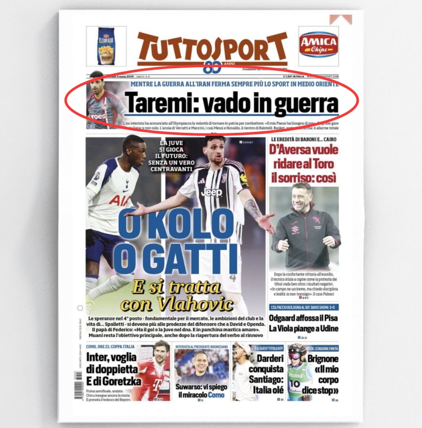 03月03日讯 今日的都灵体育报头版报道了伊朗前锋塔雷米的消息:现效力于奥林匹亚科斯的塔雷米已向球队传达了想要离开希腊、返回祖国的决定。