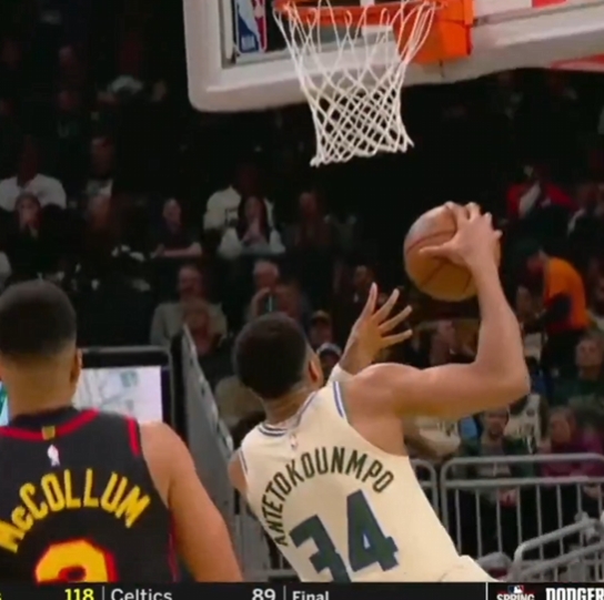 帕金斯:我说的是,字母哥正在对着篮筐爱爱(He's making love to the rim)。