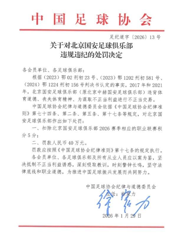 pvp.wanmei.com 官网-被扣5分+罚40万!国安官微硬刚足协:人在做天在看,球迷支持上诉